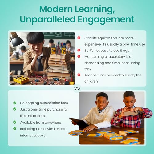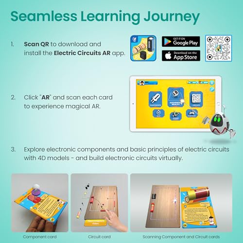 Introducing the 360ed Electric Circuit AR Learning Kit, a revolutionary educational tool designed to ignite the curiosity and enhance the learning experience of children aged 10 and above. This interactive augmented reality flashcard kit transforms the complex world of electronics into an engaging, hands-on game that not only entertains but educates.