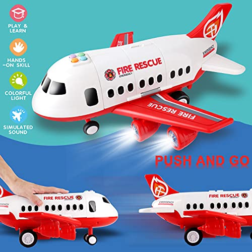 Dwi Dowellin Airplane Toy with Fire Truck Cars and Play Mat,Plane with Lights and Sounds for 3 + Years Old Boys and Girls