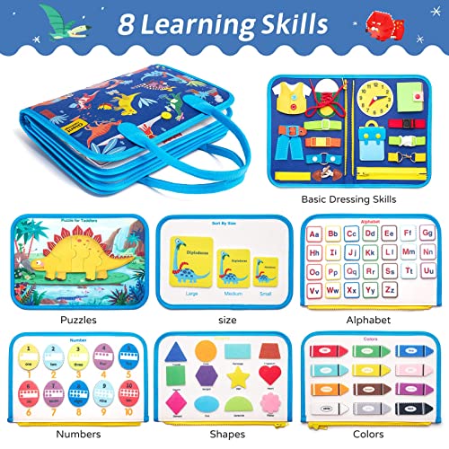The Busy Board Sensory Toys for Toddlers by Giant Cabbage is a Montessori-inspired educational tool designed to enhance cognitive skills and hand-eye coordination. Featuring 20 life skill activities, including letter and number recognition, and practical daily tasks like zipping and buttoning, this soft felt board is safe and engaging.
