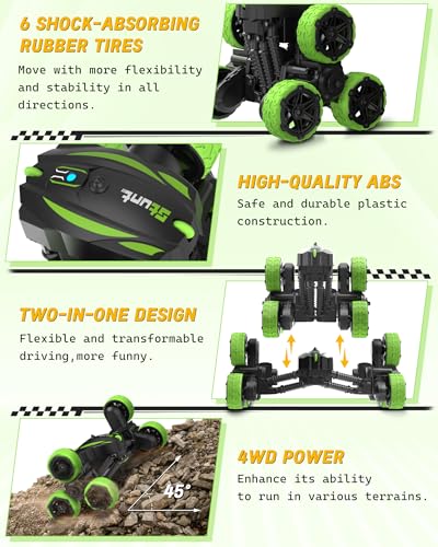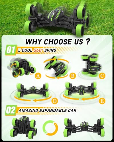 Specification: iappadore Remote Control Car, RC Cars Stunt RC Car Toys New Upgraded Transform 6-Tire Flips Car Toys, 360° Rotating, 4WD Rc Drift Truck for Boys Girls Birthday Gift (Green)
